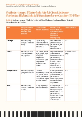Tablo 3: Seçilmiş Avrupa Ülkelerinde Aile İçi Cinsel İstismar Suçlarına İlişkin Hukuki